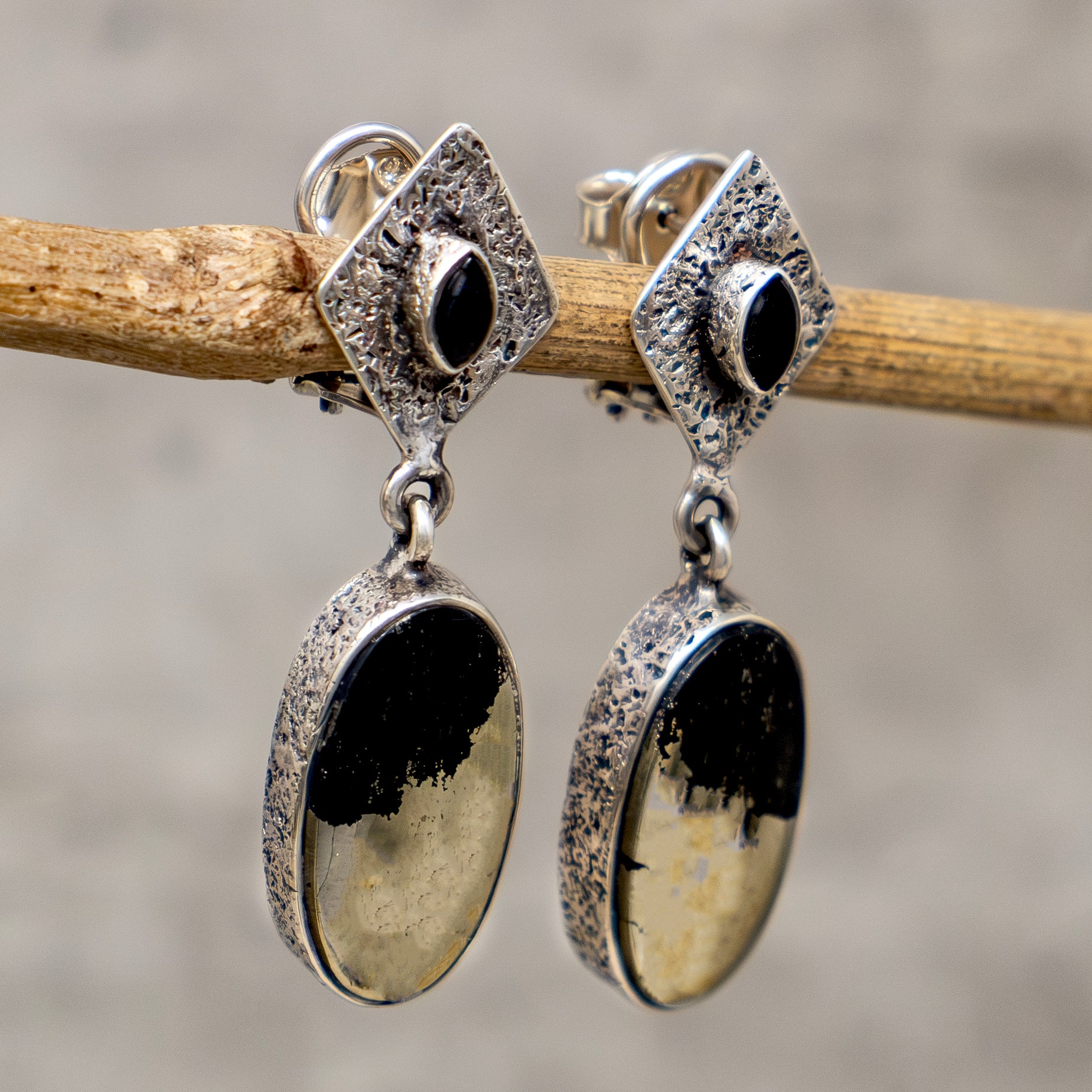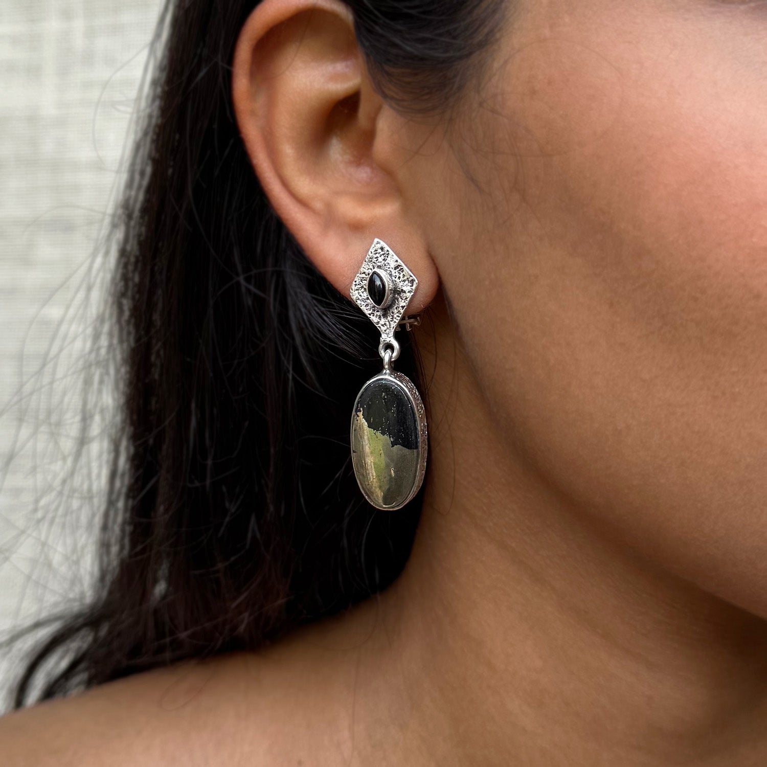 Black Onyx and Magnetite Pyrite set in Textured Sterling Silver 92.5%