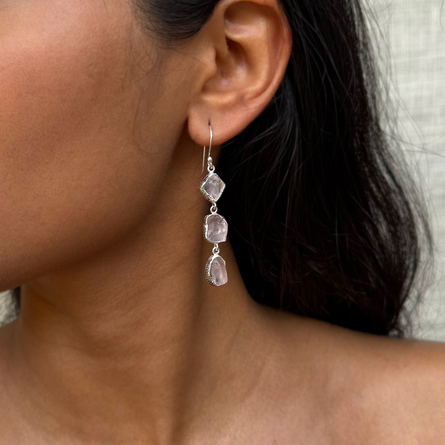 Uncut Rose Quartz set in Textured, Oxidised, Sterling Silver 92.5%