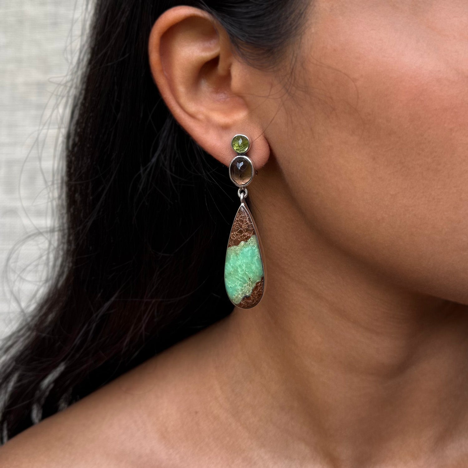 Peridot, Smoky Quartz and Chrysoprase set in Sterling Silver 92.5%