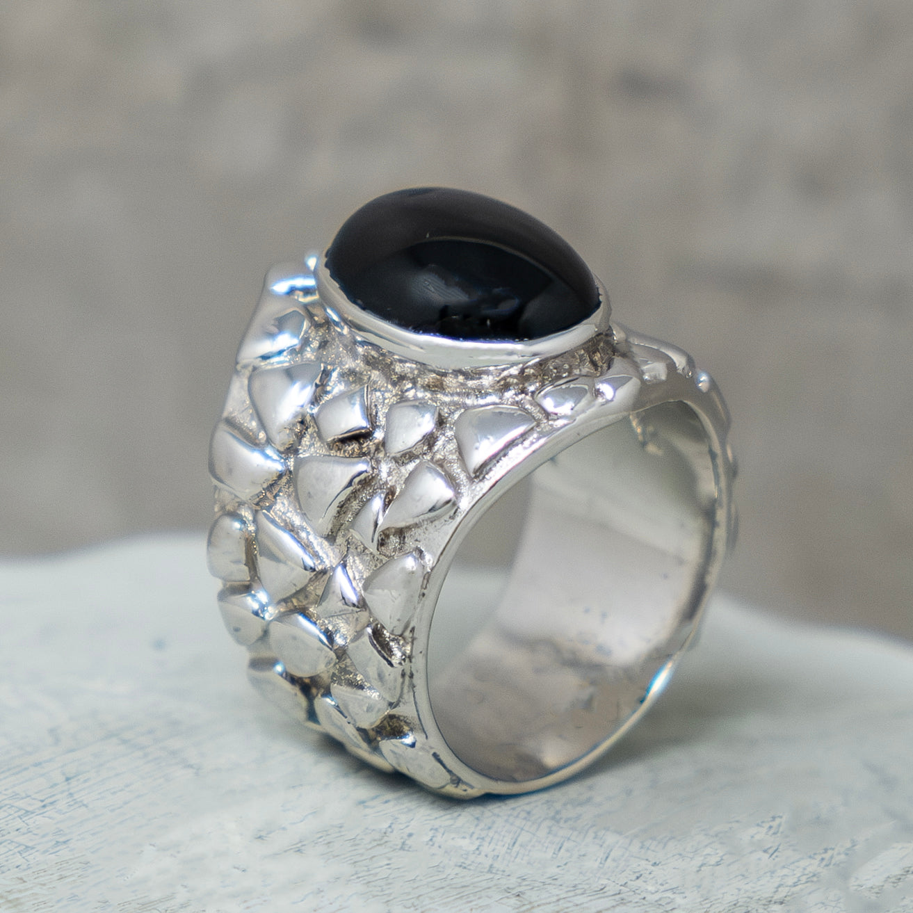 Black Star set in Textured Sterling Silver 92.5%