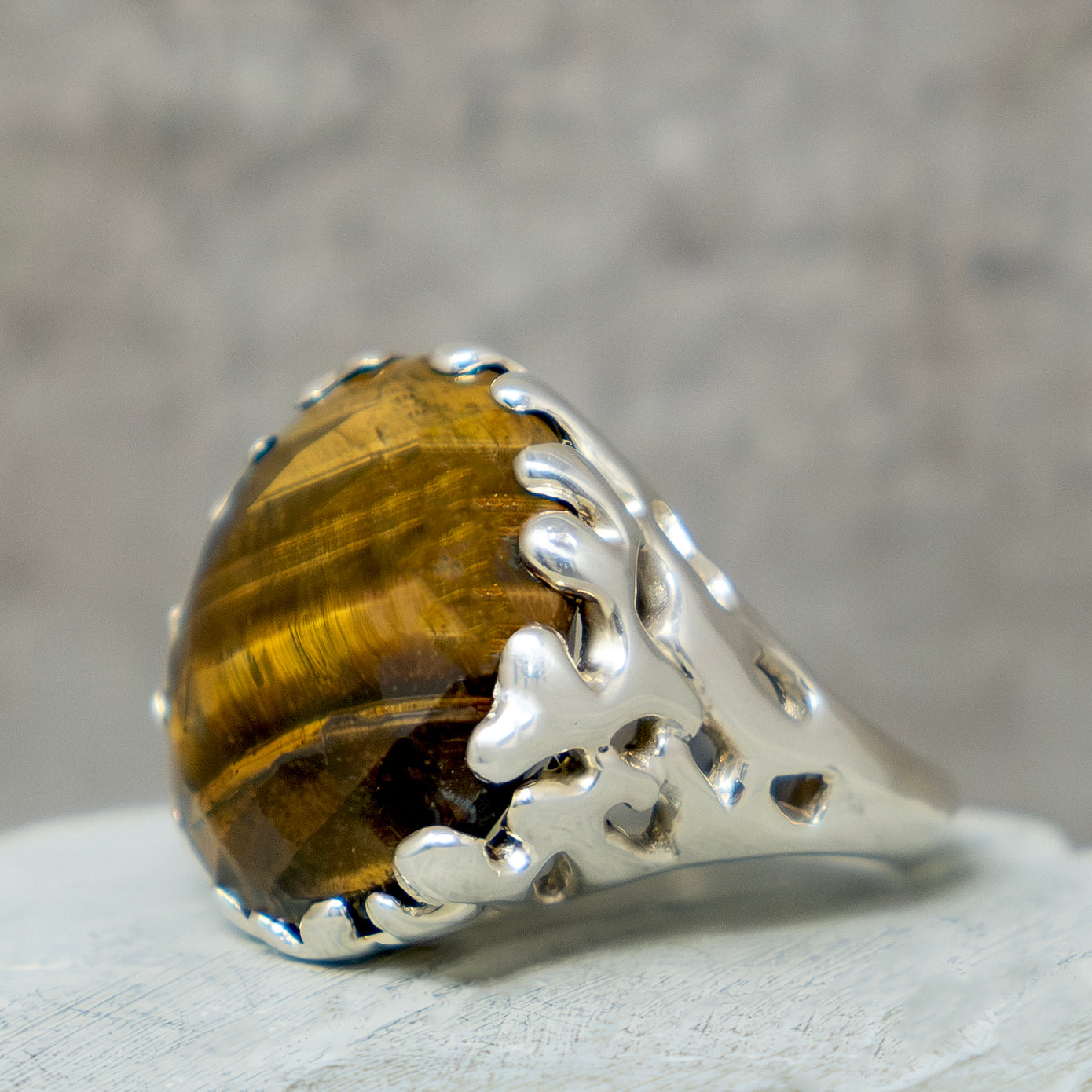 Tigers Eye set in Textured Sterling Silver 92.5%