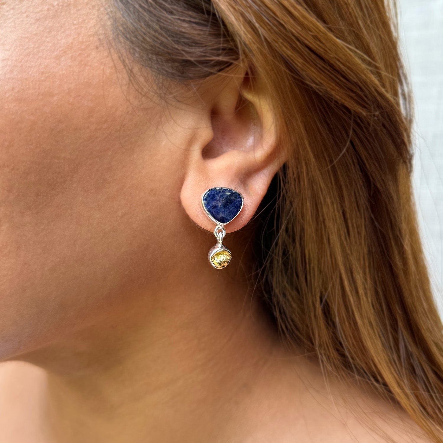 Sodalite and Brass set in Sterling Silver 92.5 % <br>