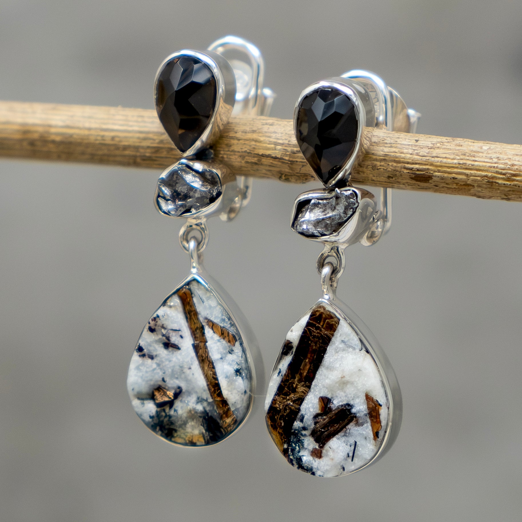 Smoky Quartz, Meteorite and Uncut Astrophyllite set in Sterling Silver 92.5 %